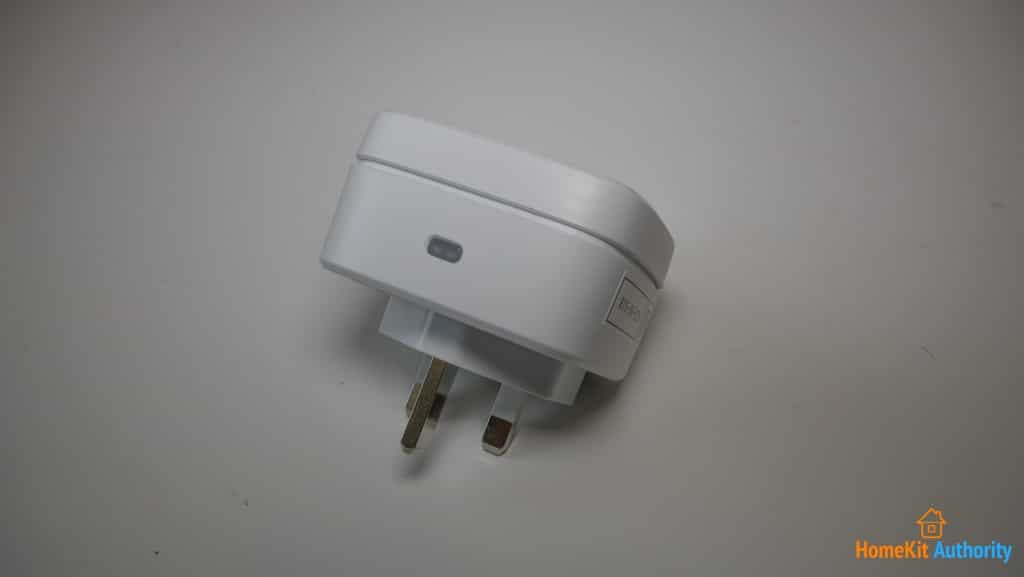 On the back of the Eve Energy you will find the standard UK 3 plug prongs. On the top you have a button that can turn the device on and off. This also glows green or red to show the user the current power state.